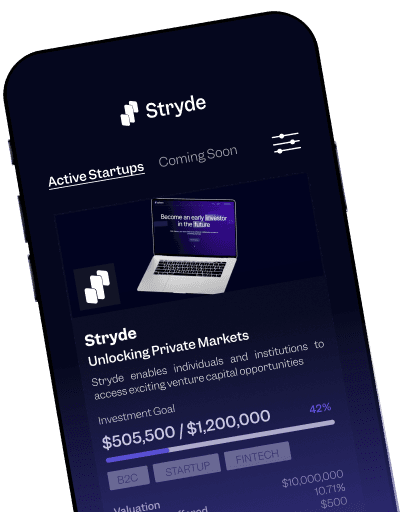 Stryde Ventures Limited is regulated by the Dubai Financial Services Authority (DFSA) as an Operator of an Investment Crowdfunding Platform. By using Stryde, you agree to be bound by the Terms & Conditions, Cookie Notice and Privacy Policy. Private market investing is a high risk activity. You should only invest what you are willing to lose as there is a good chance that you will lose all the money you invested. Additionally, private market investing has no guaranteed returns. You will not be protected from a bad investment. Even in the case of a successful investment, your capital could be locked up until the company triggers an exit event. Please read Key Risks before investing.