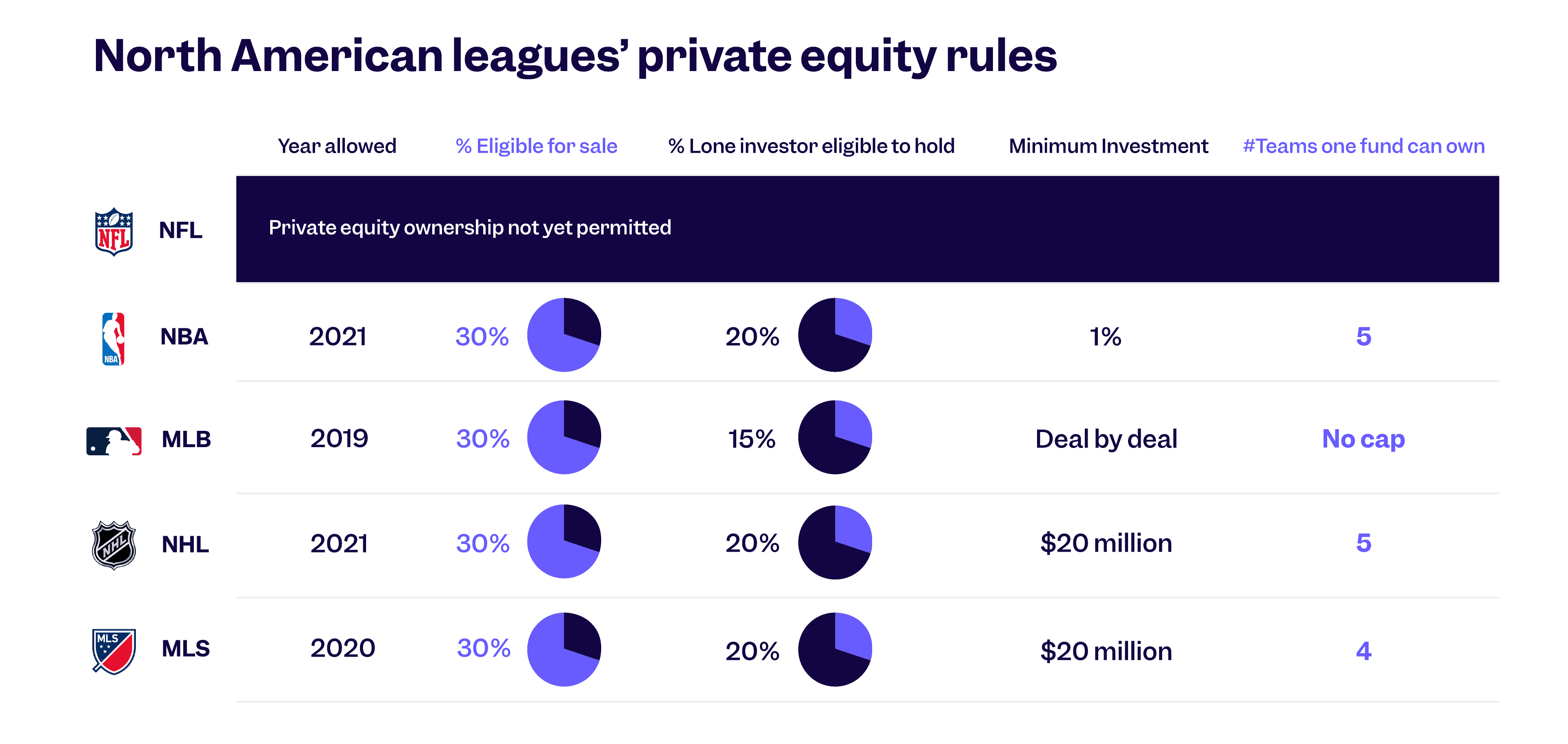 Over the past four years, MLS, NHL, and MLB have all revised their regulations to allow private equity ownership.