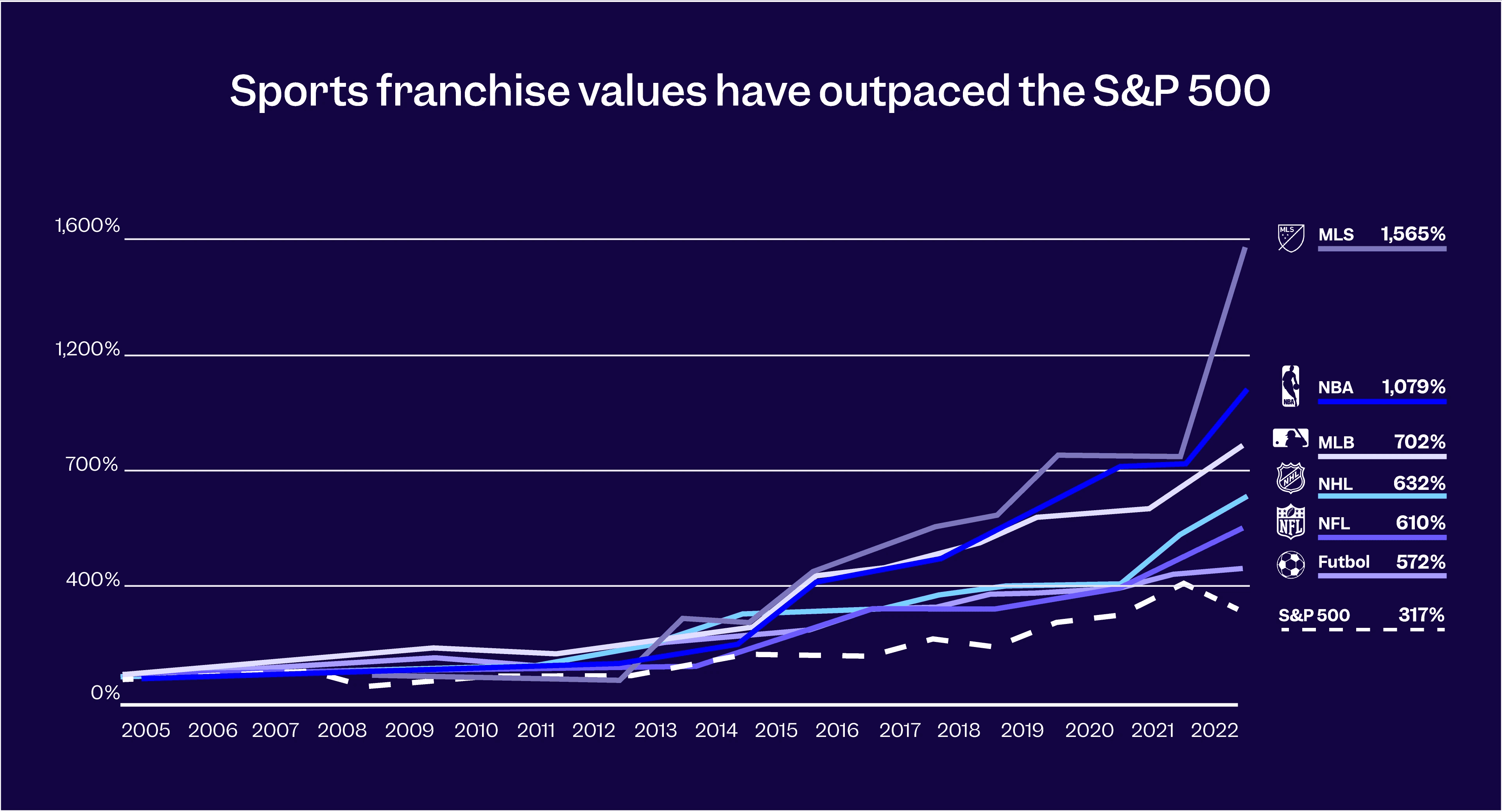 Sports franchises have historically appreciated in value at a rate that often outpaces traditional stock indices like the S&P 500.